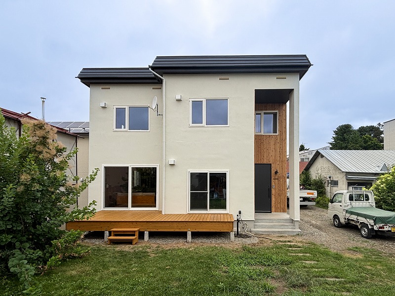 庭に向かうウッドデッキも新設し、暮らしの幅が広がる外構に。
